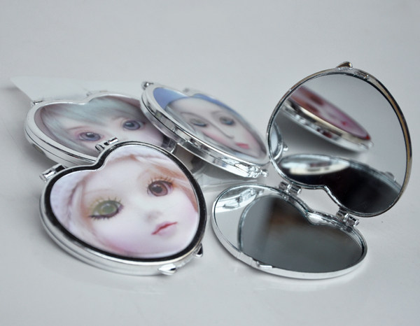 SD Doll Blink Eyes Carry-on Makeup Mirror Batch Peach Heart-shaped Cute Makeup Mirror Cartoon Bifacial Folds Small Mirror