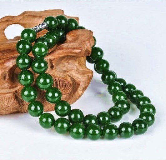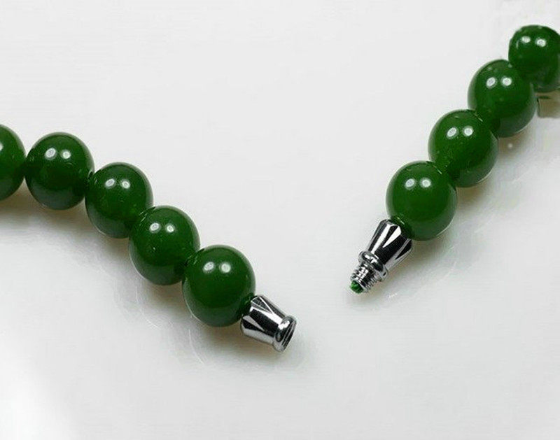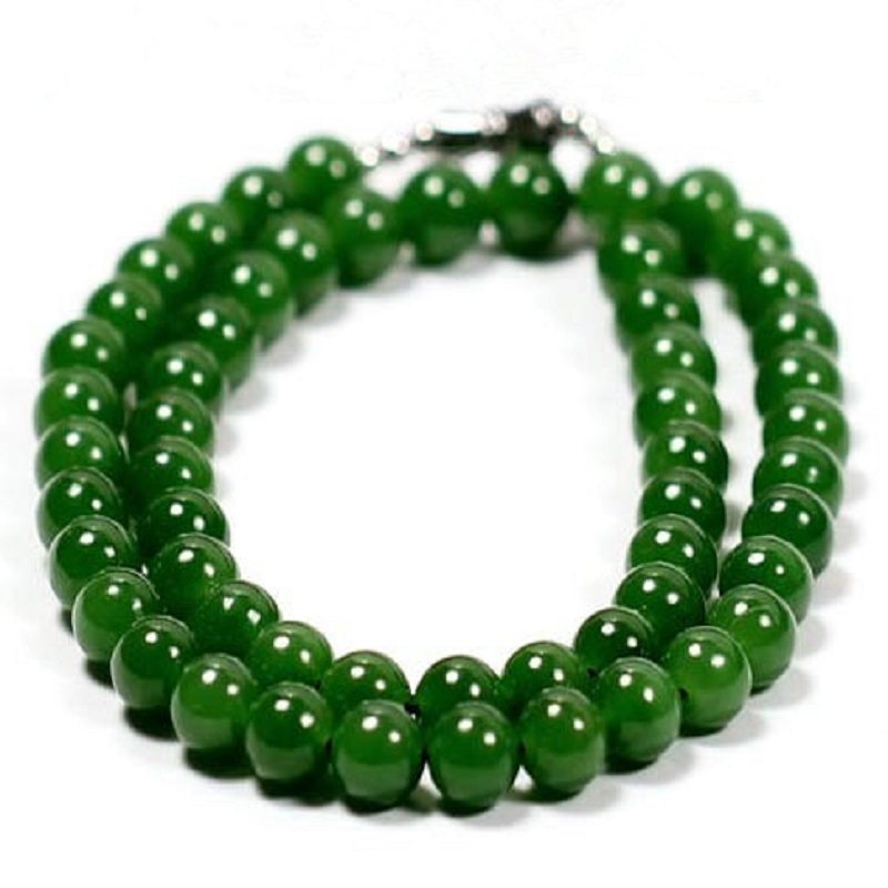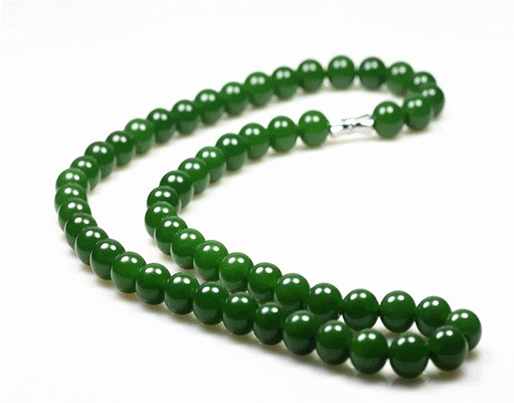 And Tian Yubi jade round pearl necklace spinach green lady with 10mm jade necklace chain