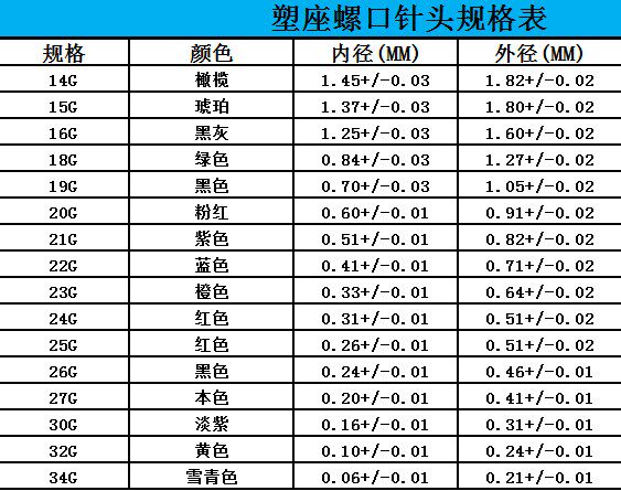 14G OLIVE COLOR 15G AMBER COLOR 16G GREY 18G GREEN 20G PINK 21G PURPLE 22G BLUE 23G ORANGE 25G RED 27G 27G COLOR 19G BROWN