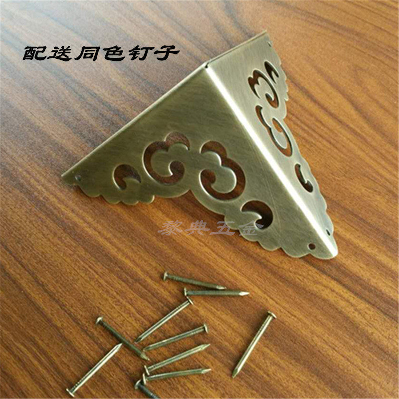Chinese antique three-sided bronze wrap corner corner code furniture pure copper protective corner luggage corner table Zhangwood case copper accessories hollowed-out