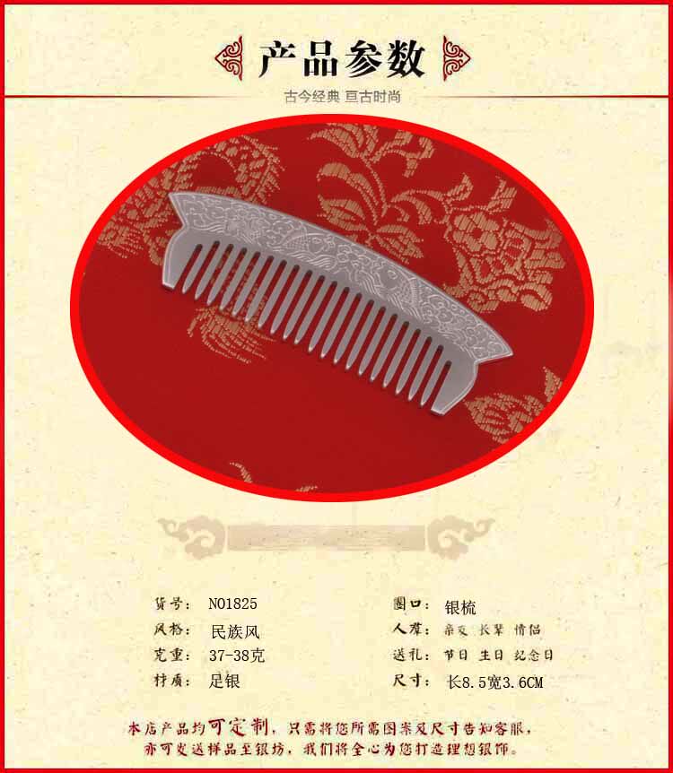 Snowflake silver comb 999 silver double fish comb foot silver comb send girlfriend snowflake silver Yunnan silver comb NO1825