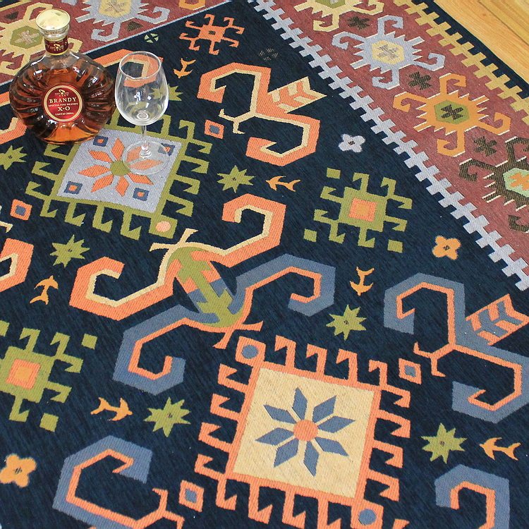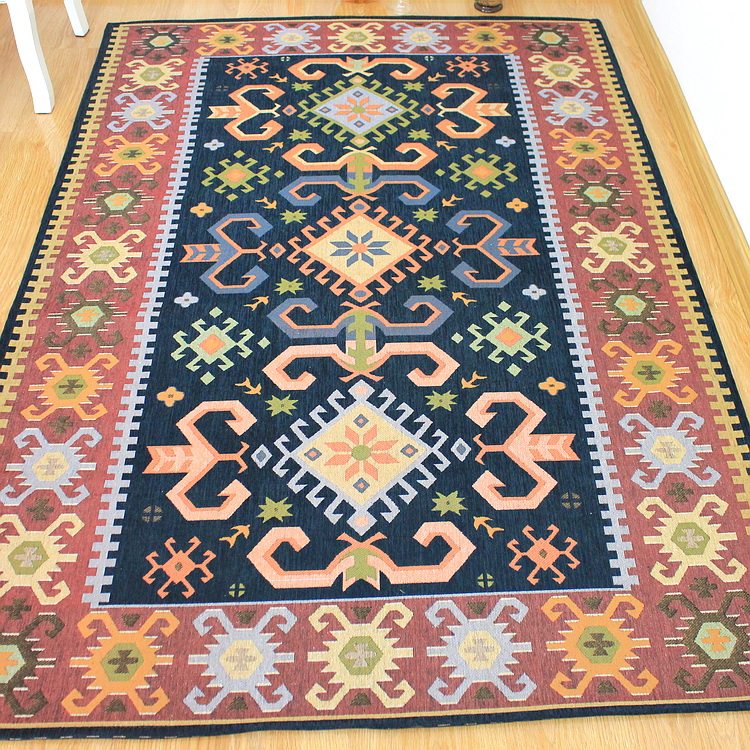 Living room Mediterranean carpet American plaid mix and match floor mat coffee table cushion bedroom bed front blanket Chinese exotic style