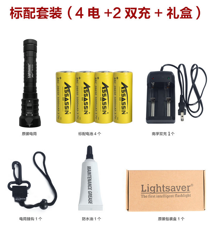 Lightsave diving intense light flashlight d4 waterproof led charging underwater highlight night diving and amphibian