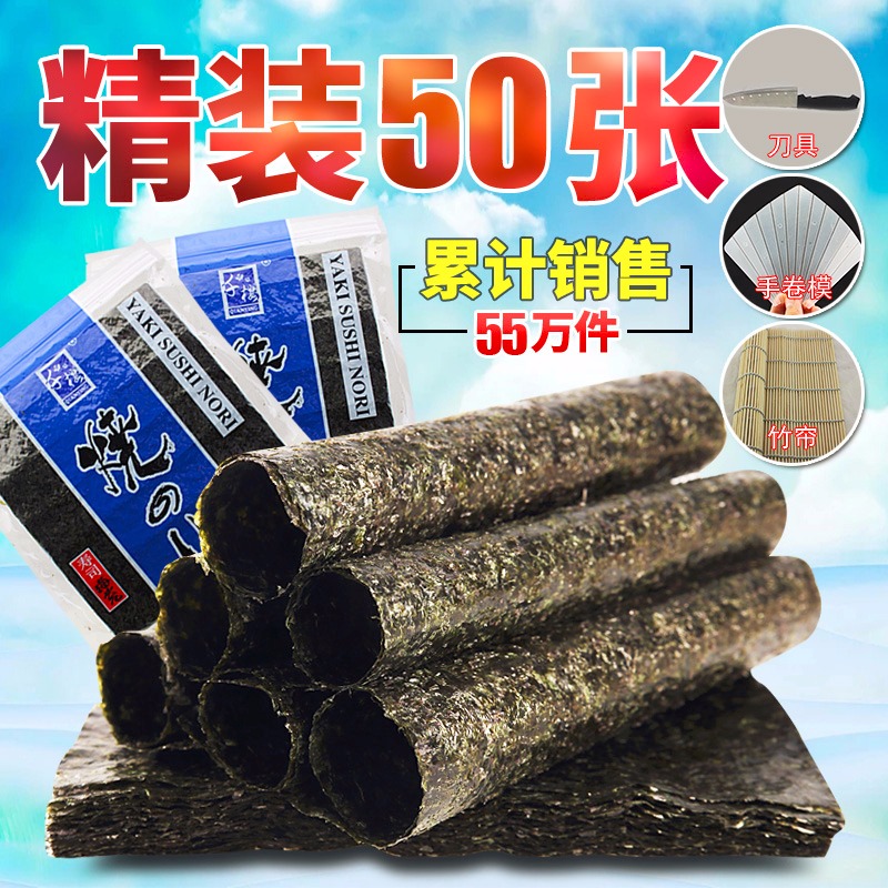 Make sushi nori 50 pieces of seaweed wrapped rice special ingredients and tools set full set of rolled bamboo curtain large pieces