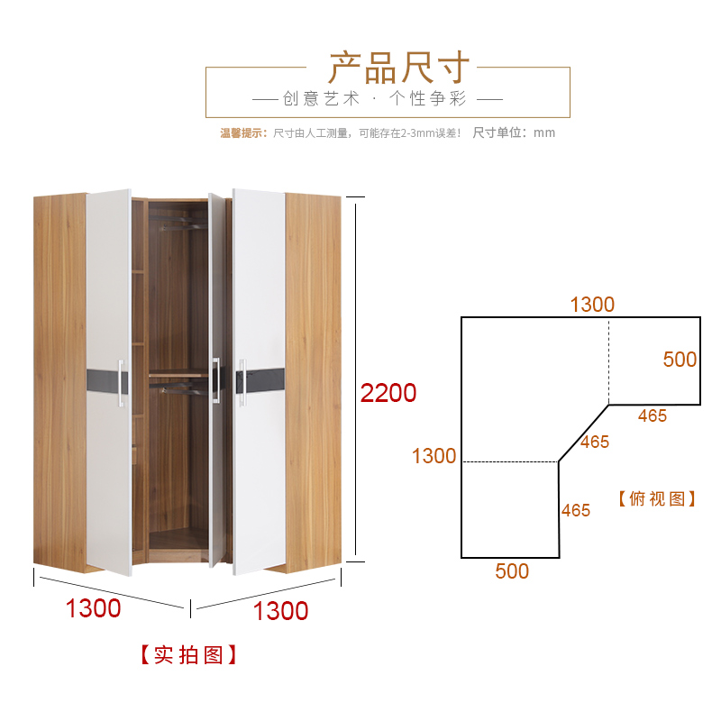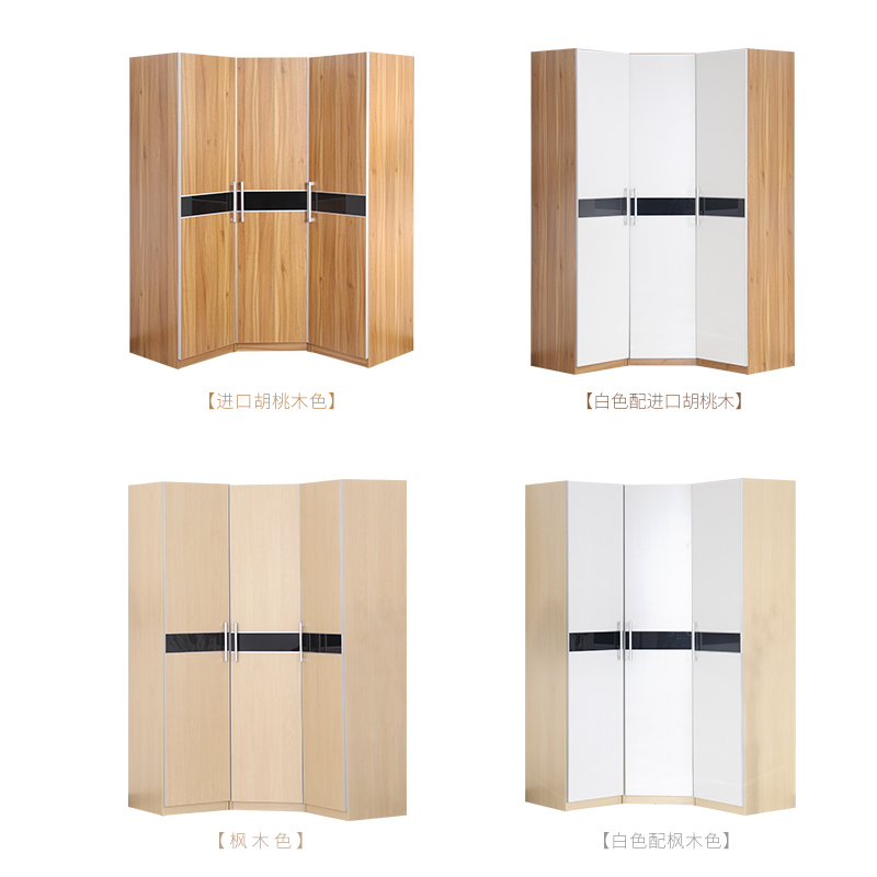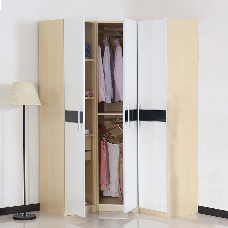 Corner wardrobe modern minimalist 90-degree small apartment L-shaped multi-functional flat-opening three-door corner storage cabinet custom-made