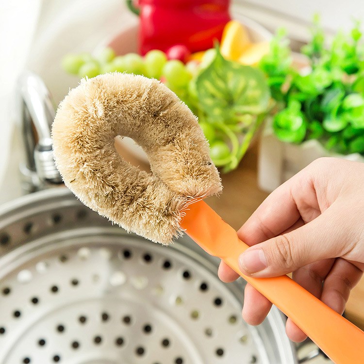Hemp fiber non-stick oil long handle washing pot brush kitchen dishwashing degreasing oil decontamination cleaning brush kitchen brush pot bowl brush