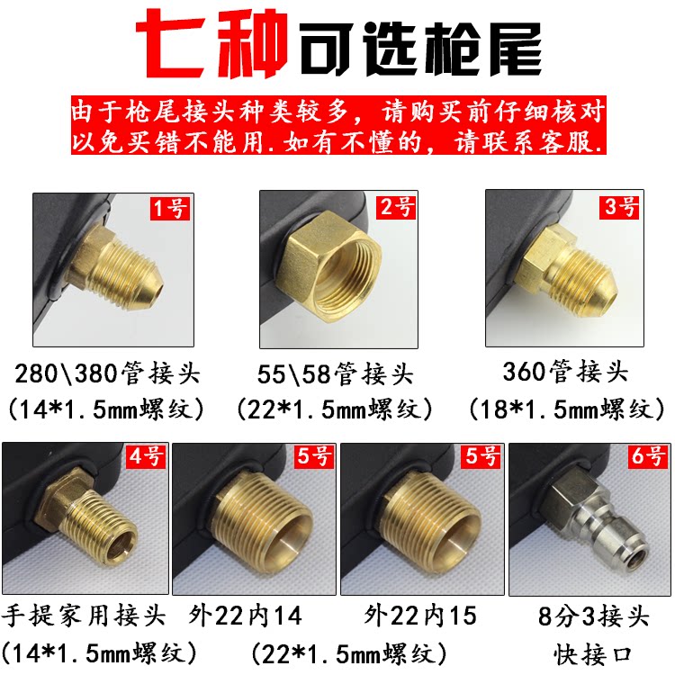 Jiaqiang black cat high pressure fan-shaped water gun 55 58 280 380 type washing machine car washing machine pump duckbill gun spray gun