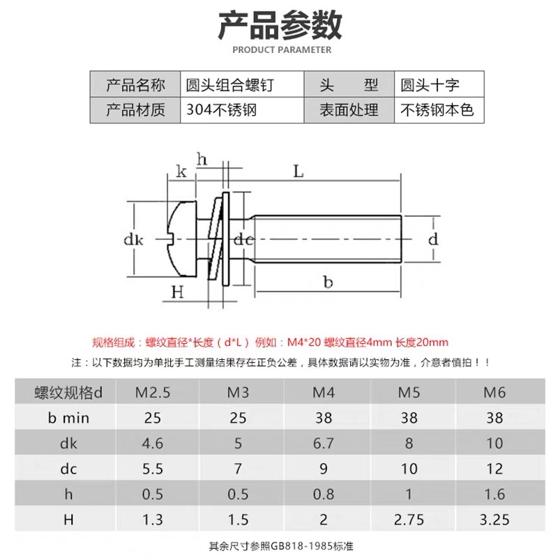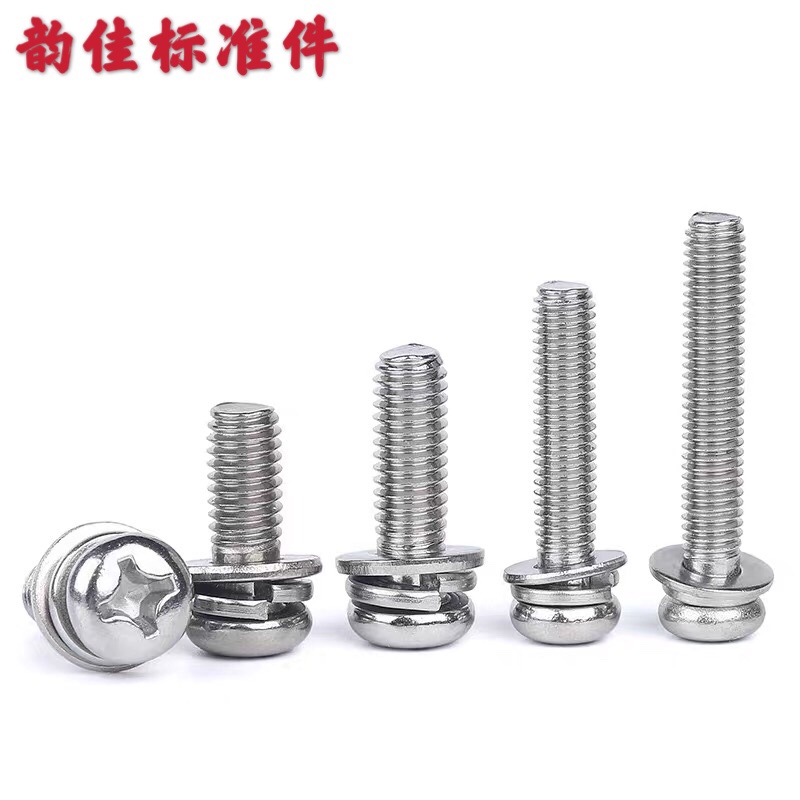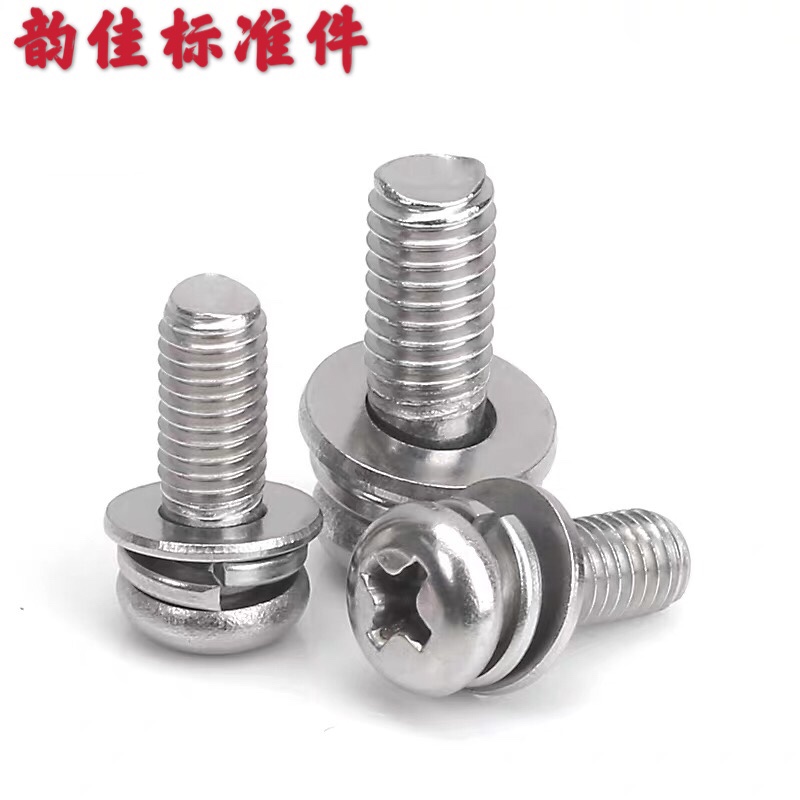 M4 304 stainless steel round cross three combined screws with flat - pad cushion bolt