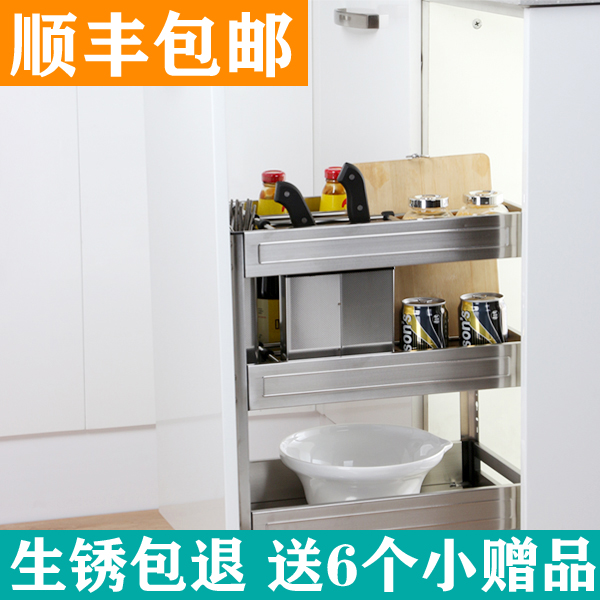 Overall Cabinet Pull Basket Stainless Steel Damping Multifunction Seasoning Pull Basket Seasoned Basket Kitchen Double Bowl Rack Drawer pull basket