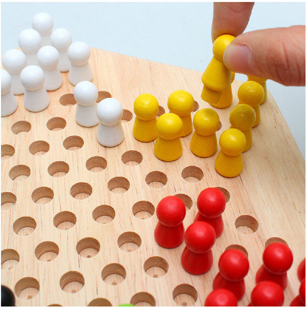 Boutique Logs Coincidentally Wood Adults Parent-child Wooden Hexagon Checkers Jiulian Chess Baby Puzzle Building Blocks Toys