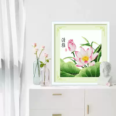 Lotus cross stitch 2021 New embroidery small piece thread embroidery own embroidery living room simple embroidery hand hipster natural wind