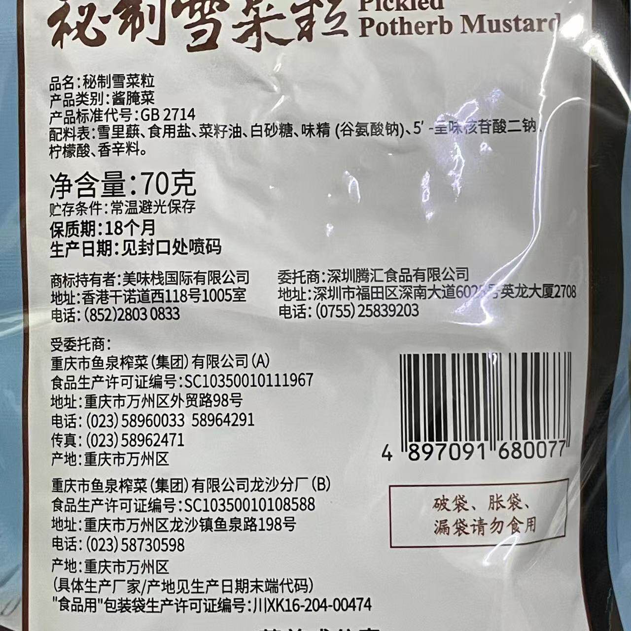 Hong Kong Brands Delicious Trestle Vegetable fungus Squeezed Vegetable Silk 210g (70gX3) ready-to-eat