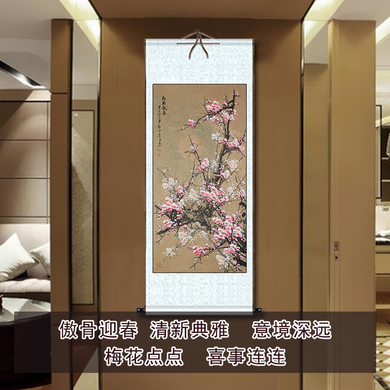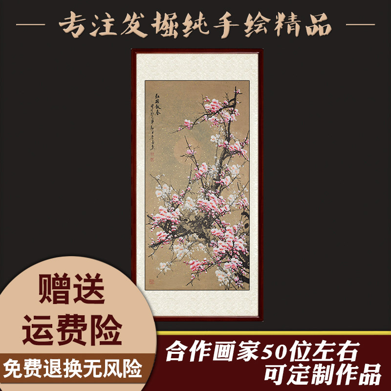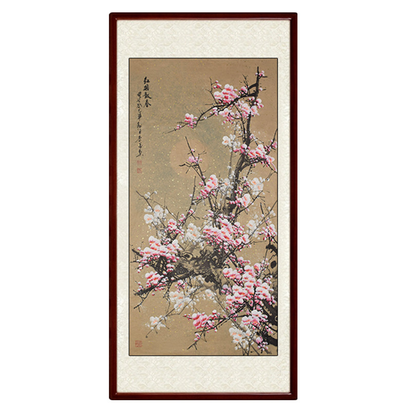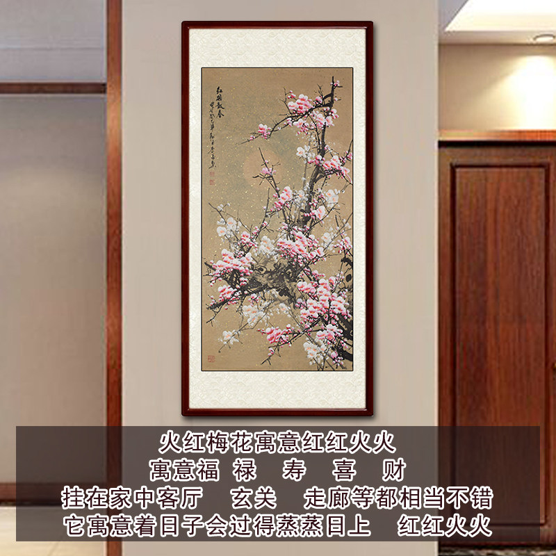 Pure Hand Painted Country Painting Plum Blossom Painting Imitation Ancient Red Plum Newspaper Spring Living Room Stairway Xuanguan Corridor Vertical Version Decoration Painting Hanging Painting