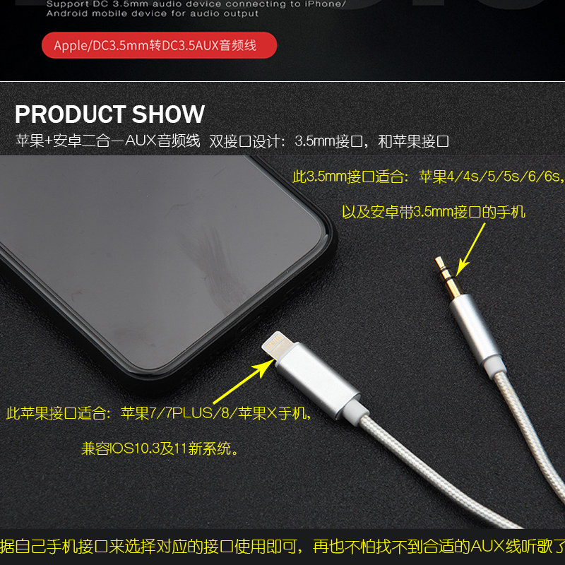 (3 5mm connector) AUX line black one (3 5mm connector) AUX line white one (3 5mm connector) AUX line red one (elegant black) car
