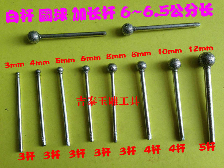 F needle round ball extended handle Spherical bat carving diamond grinding head Jade carving tool Jade jade jade grinding needle