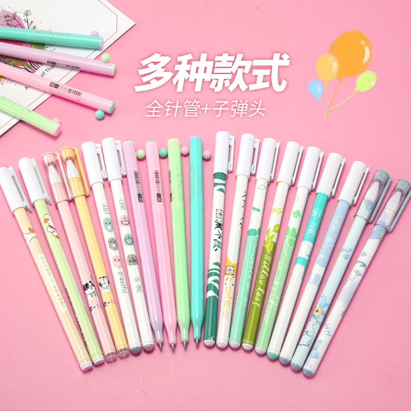 Zhishang Chuangmei Cartoon Cute Ballpoint Pen Neutral Pen Watery Pen 0.35 0.38 0.5mm Black Blue Red Water Pen Literature Fan Carbon Pen Student Sign Pen with Small Fresh Full Syringe Pen