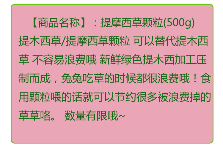 Rabbit food Guinea pig food Timothy grass particles can be used for Timu West grass Rabbit Chinchilla loves to eat 500G full of 3 pounds