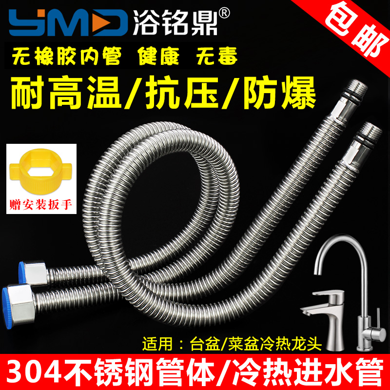 304 stainless steel tip tube Vegetable basin sink faucet Hot and cold connection water hose Metal explosion-proof single head tube