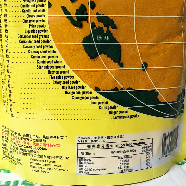 1 bag of green ring turmeric powder 500g Chinese and Western food curry seasoning coloring spices