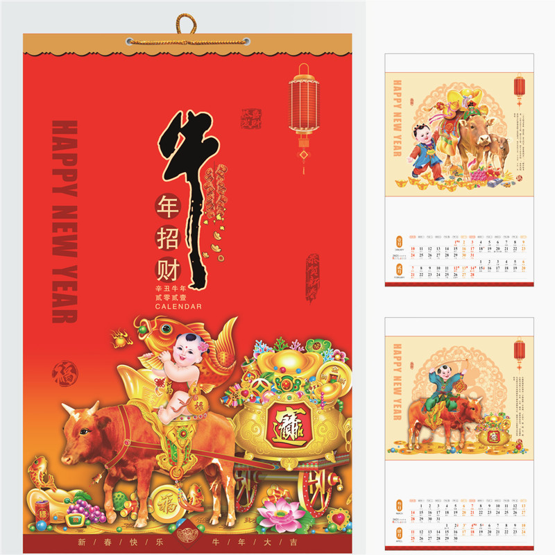 2021 calendar wholesale vertical red festive company advertising custom New Year calendar home calendar cattle calendar