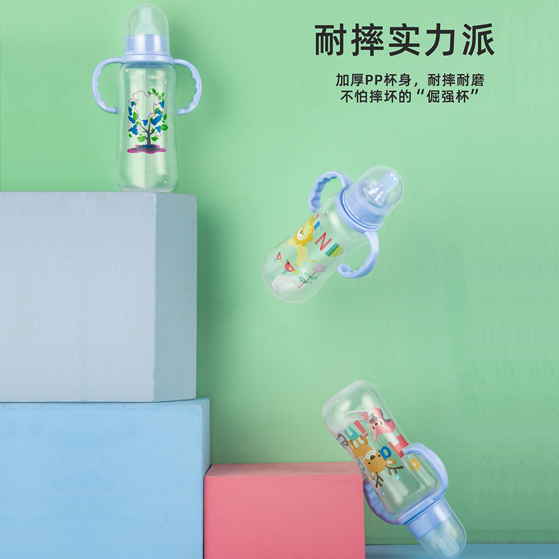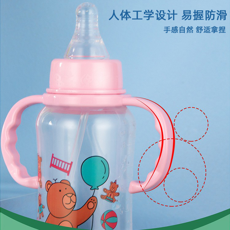 Newborn Baby Standard Caliber PP Milk Bottle 0-36 Month Resistant Breast Milk Head Silicone Pacifier With Shank Automatic Straw