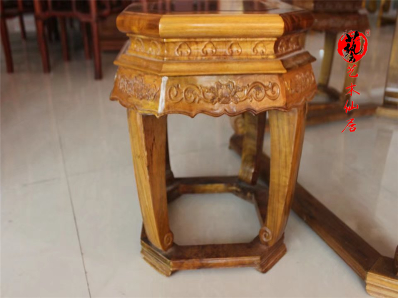 Red Wood Furniture Golden Silk Nanwood Casual Table Hexagon Table 5 Pieces Small Leaves and Nangmu Qingstyle Home innate