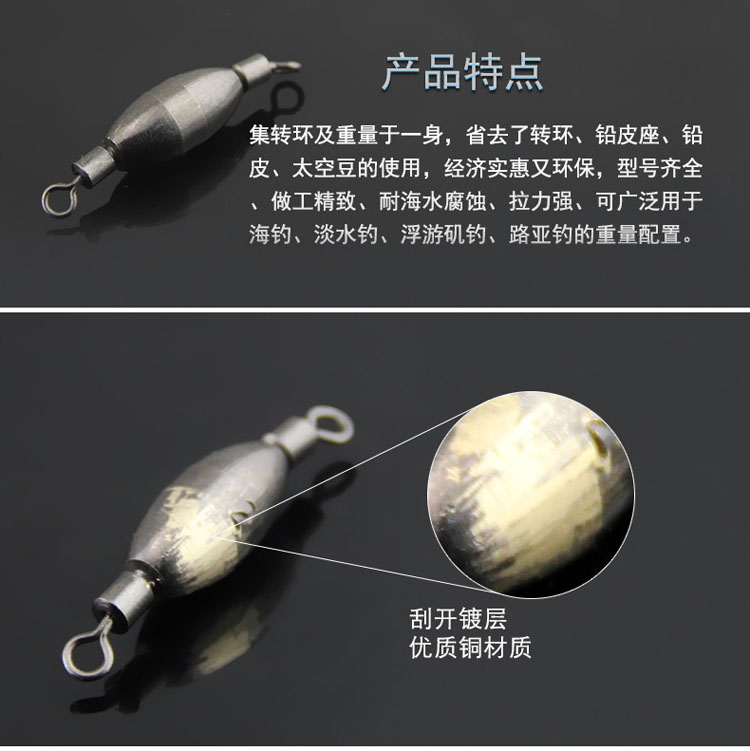 Bulk swivel copper hammer Copper sinker counterweight New fast lead sinker sea fishing Luyaji string hook fishing accessories