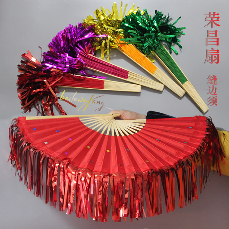 Flower drum lamp test children 7 8 9 adults 10 12 inch fan of the fan of Rongchang Little red fan simulation simulation silk