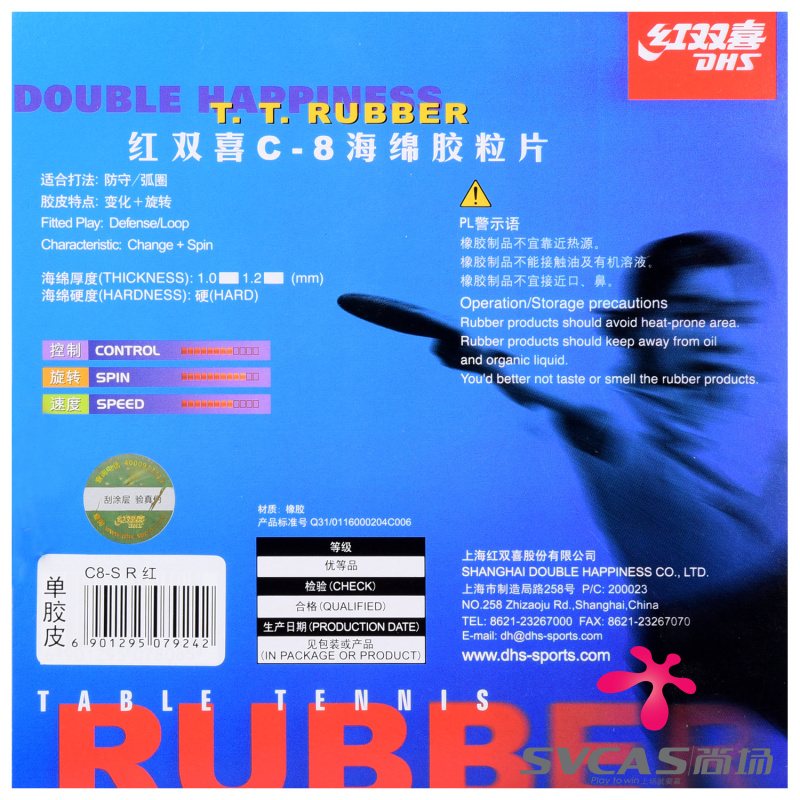 Red double-delight table tennis rubber long rubber sheet rubber C7 C8 long glue Single rubber sheet offensive type Cloud mist 3-3 grain glue