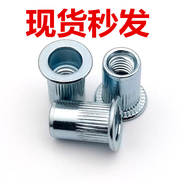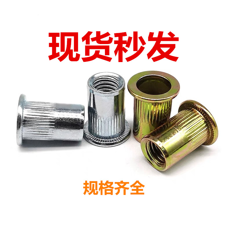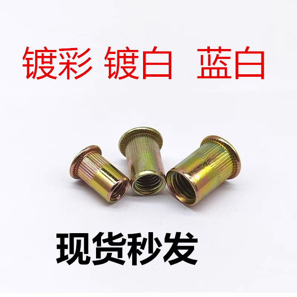 Iron Carbon Steel Pull Riveting Nut Flat Head Vertical Stripe Roll Flower Riveting Nut Plated Color Pull Riveter M4M5M6M8M10M12