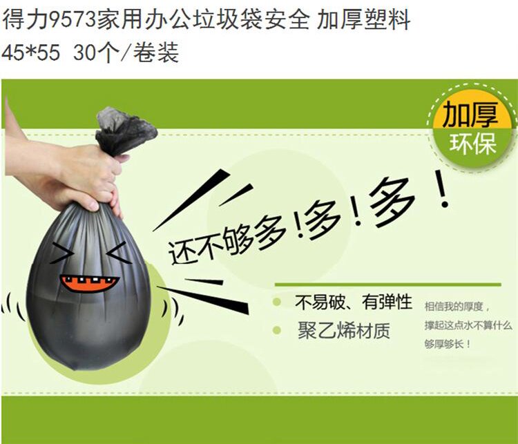deli Tili 9573 household office kitchen cosmetic room thickening plastic bag garbage bag 45*55