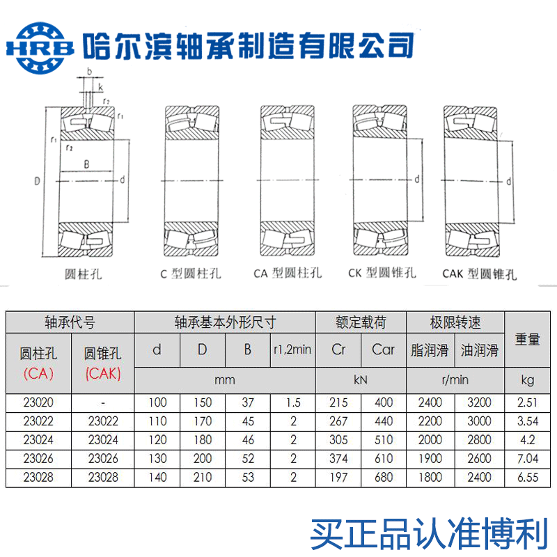 HRB Harbin Spherical roller Bearing 23020 23022 23024 23026 23028CA CAK W33