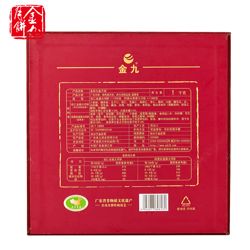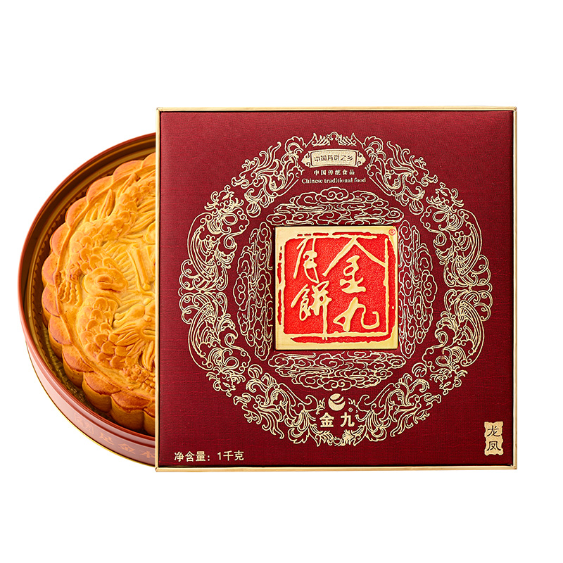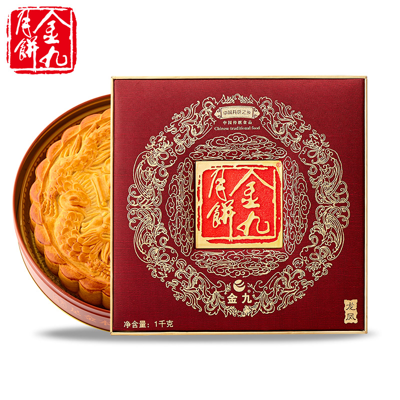 (Jinjiu Flagship Store) Dragon and Phoenix Gift Box 2kg Wuchuan Jinjiu Wuren Mooncake Egg Yolk Lotus Paste Mooncake Gift
