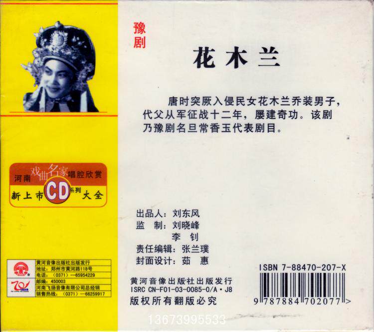 Yu drama special sale: Yu Opera master Changxiang Jade Classic film "Flower Mulan" Single disc CD onboard CD CD