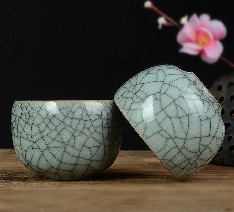 Boutique Kung Fu Tea Cup Master Cup Ceramic Tea Cup Ge Kiln Ice Cracked Small Tea Bowl Celadon Tea Cup Single Cup