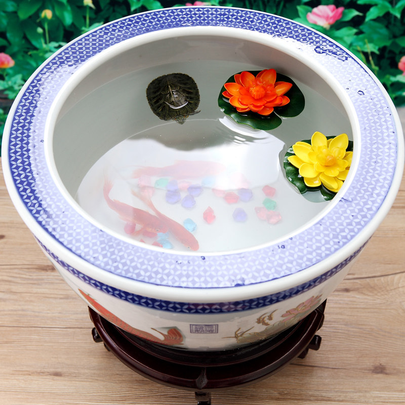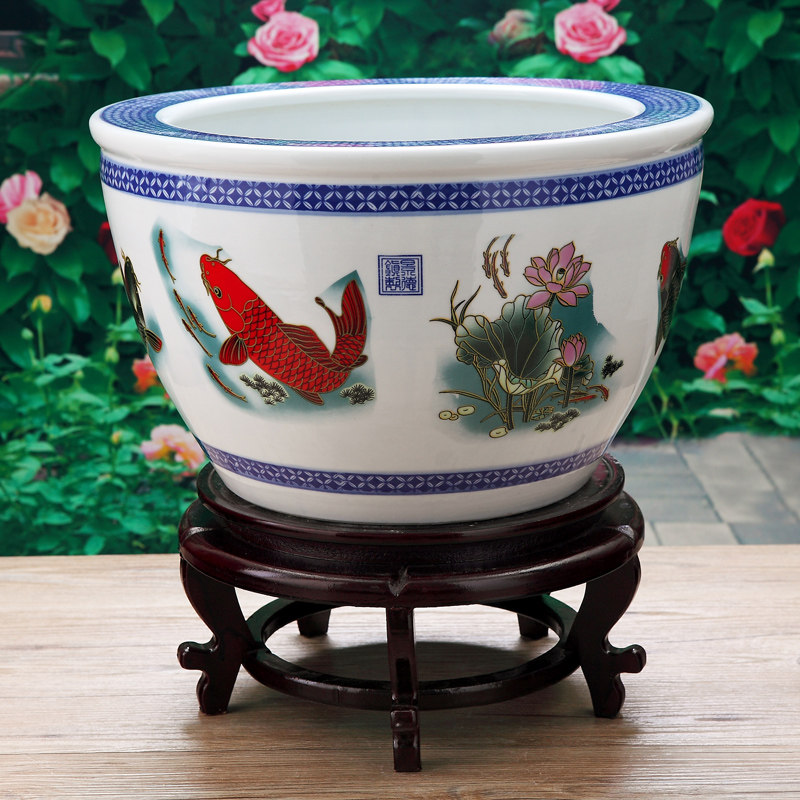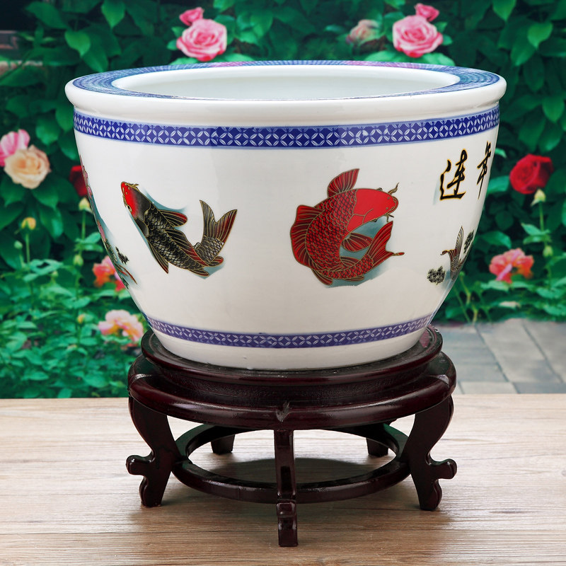 Jingdezhen ceramic fish tank calligraphy and painting tank storage tank lotus seed tank large small green flower lotus tank