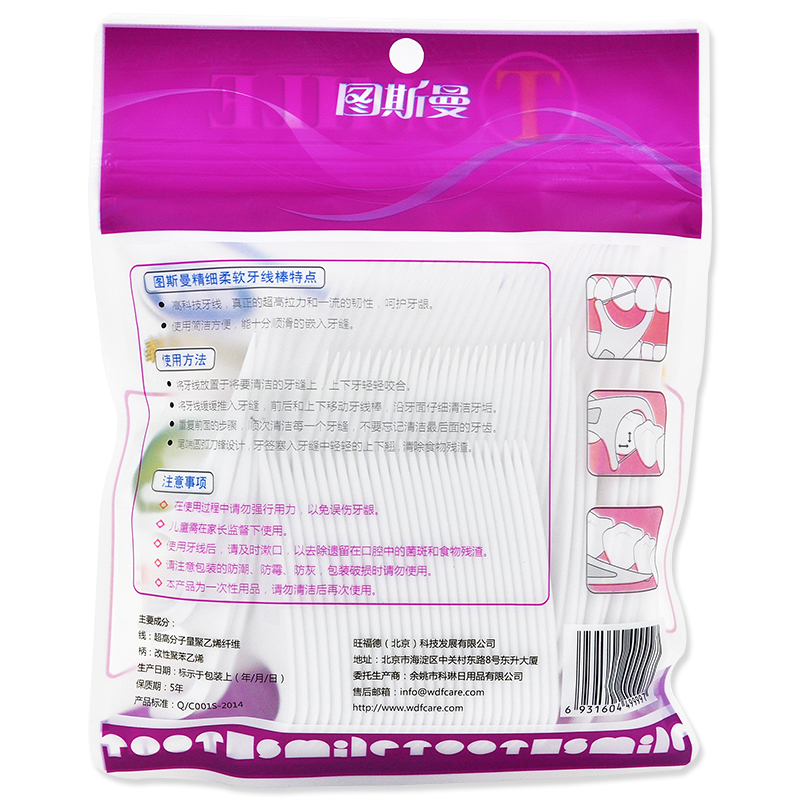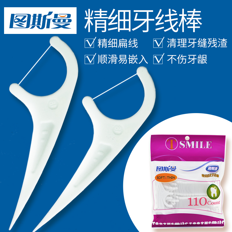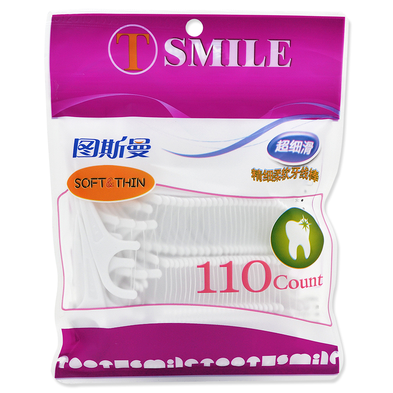 Tusman floss rod family with bow shaped ultra-fine floss label care for tooth label