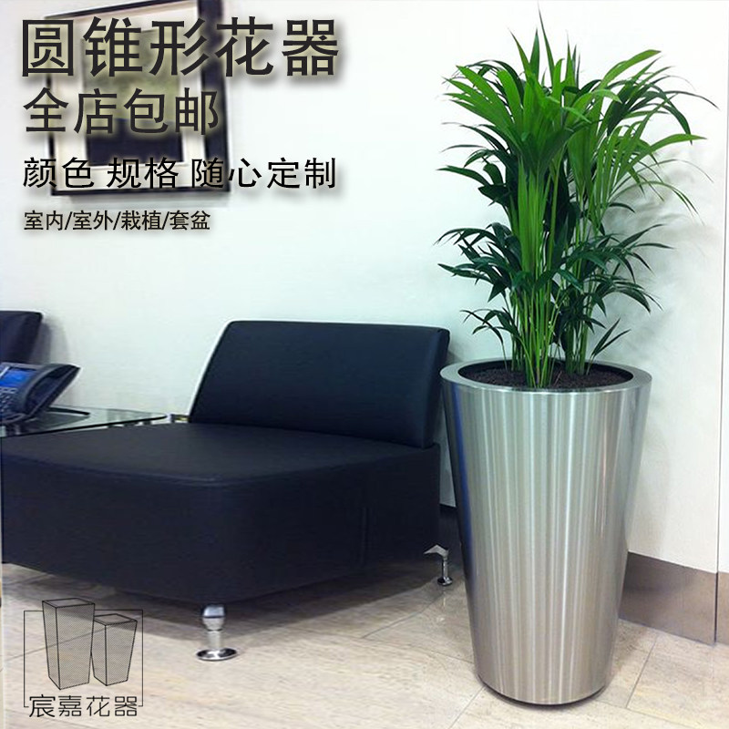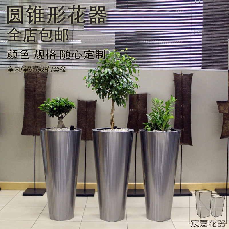 Manufacturer conical stainless steel metal flower pot Chia Floral Flower Bowl Hotel Floral Barrel Office Flower Barrel