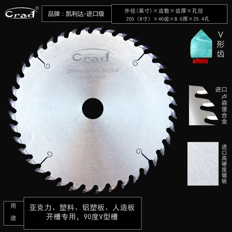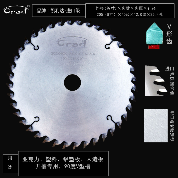 Import grade Crad acrylic aluminium plastic plate woodworking slotted thickened alloy saw blade 90-degree right angle V slot 8-inch 205-Taobao