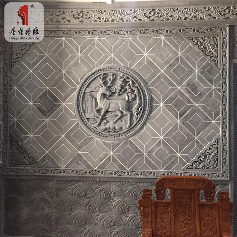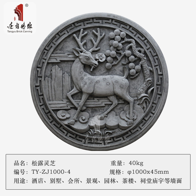 Tang Chinese brick carving Shadow wall illuminated wall ornaments Chinese background wall relief circular brick carving Songlu Lingzhi Φ1m