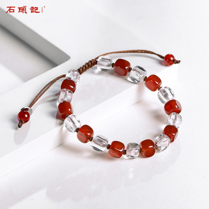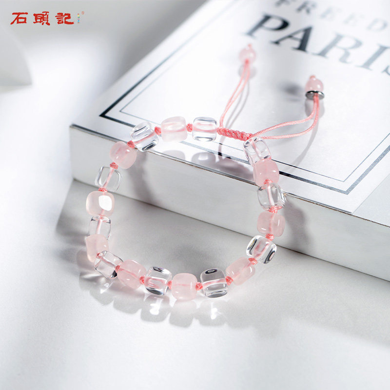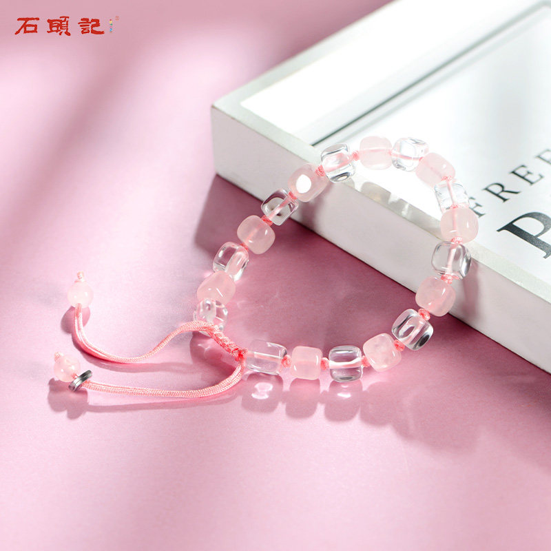 Stone Head Notes Natural Powder Crystal Handmade Weave Adjustable Hand Condensed Korean version Female Hibiscus Stone Sweet handstring gift