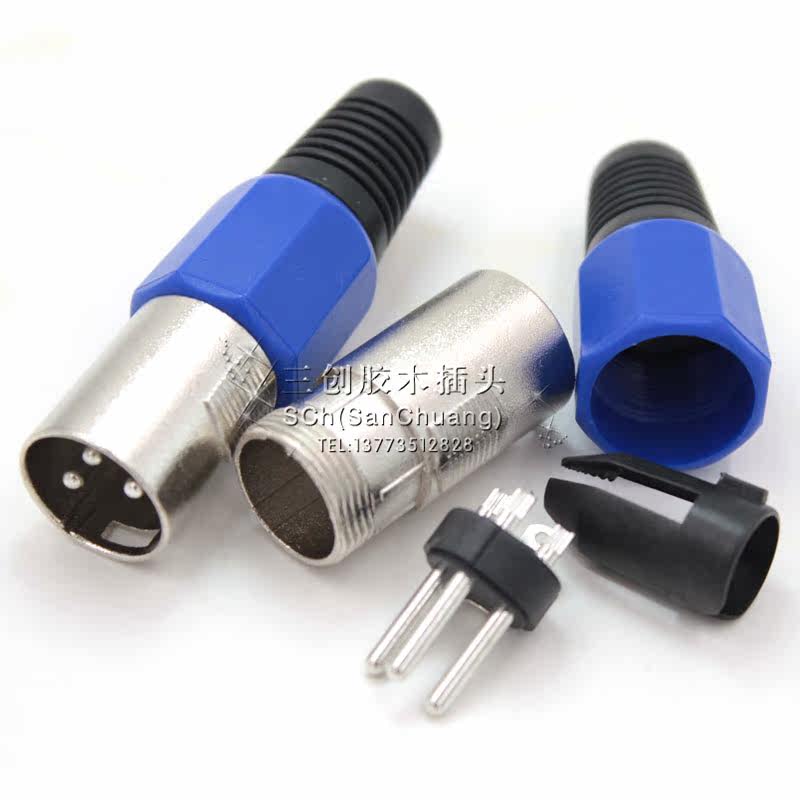 Special price Swiss male three-core Canon hairpin head hairpin faucet XLR head microphone connector Ricka hexagonal blue blue inner