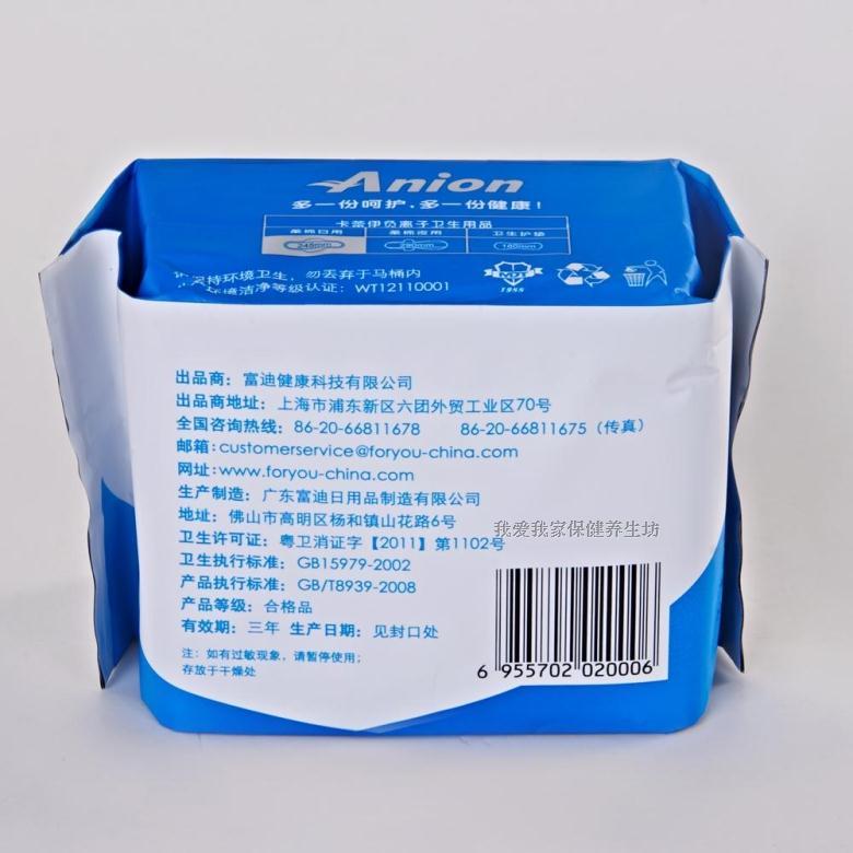 Fudi products Qiray Kalei Negative Ion Sanitary Napkin Daily Yuelang Cotton Soft Day and Night Pads 5 Packs