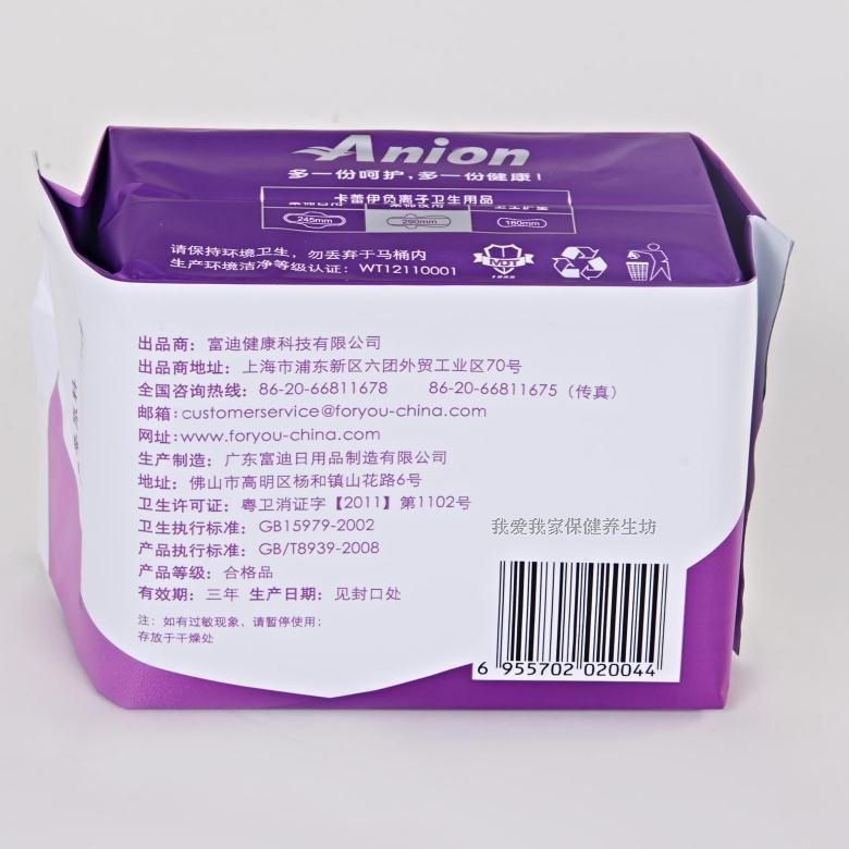 Fudi counter product qiiray Kalei negative ion sanitary napkin for night use Yuelang without fluorescent agent 5 packs