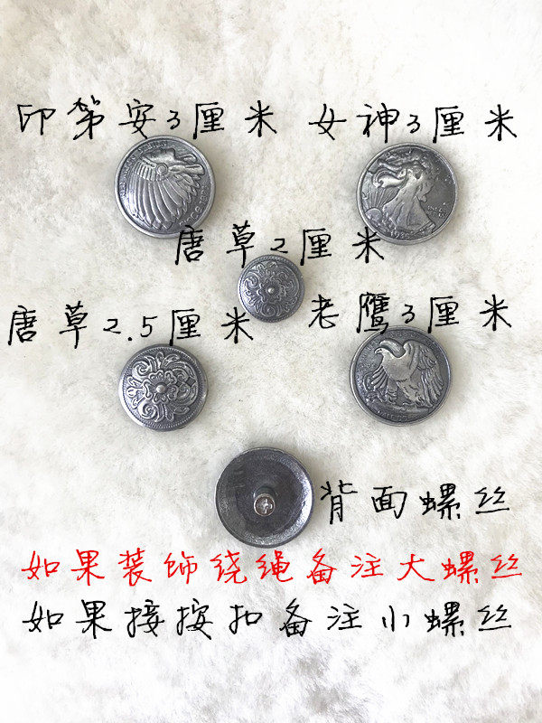 Dongrass diameter 2 5 cm 1 Tanggrass diameter 2 cm 1 Goddess Diameter 3 cm 1 Indian diameter 3 cm 1 Old eagle diameter 3 cm 1 Press Buckle Mode Mount Tool 1 copy