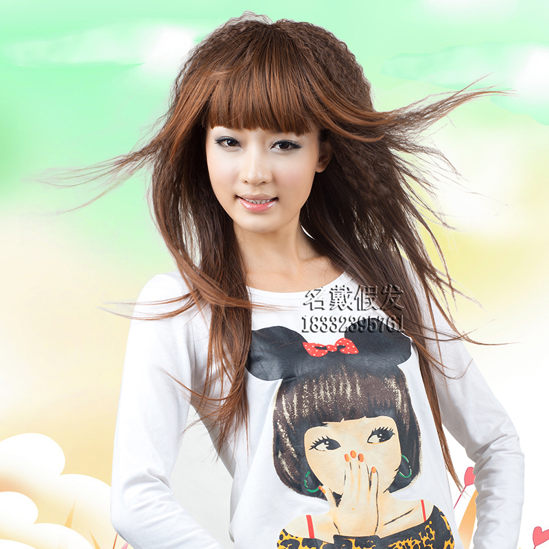 Fashionable women's fluffy corn hot non-mainstream long curly simulation natural whole wig facial repair slant sea