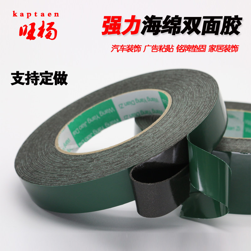 Sponge tape Double-sided PE green film Sponge double-sided tape Strong car foam double-sided tape Black foam strong double-sided tape Brand billboard double-sided tape Double-sided tape 1mm thick