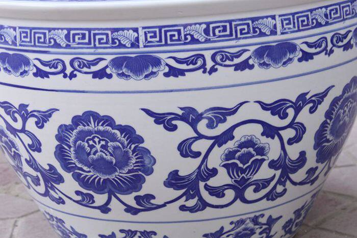 Send the base Jingdezhen ceramic fish tank calligraphy and painting tank storage tank water tank lotus seed tank large small green flower lotus tank