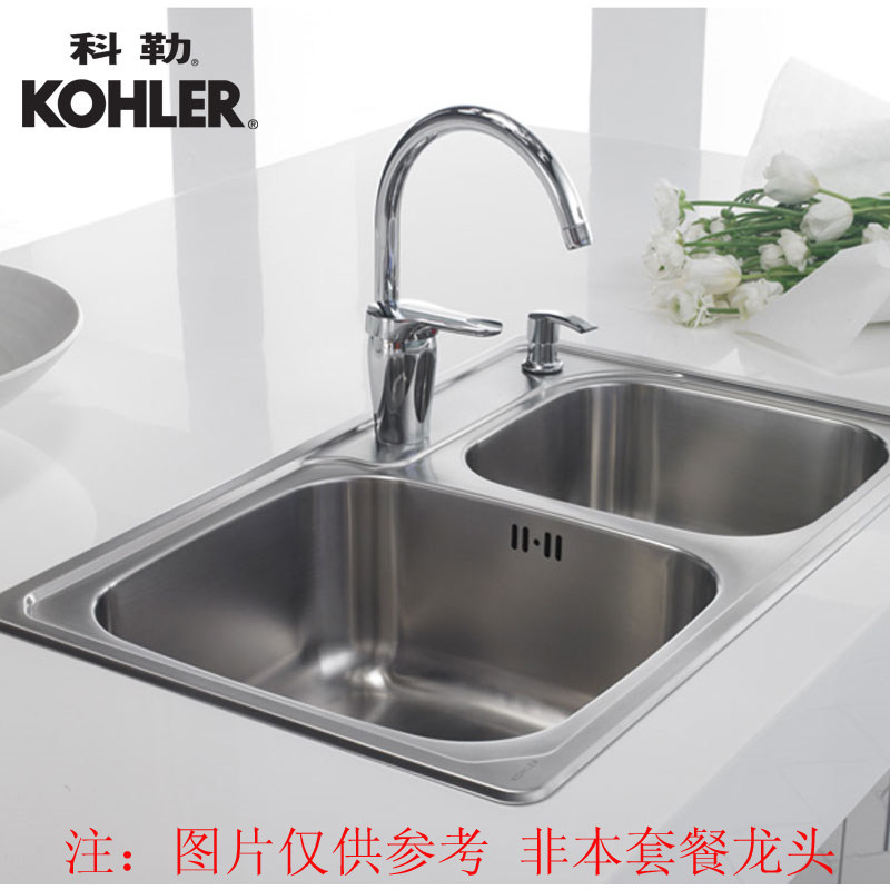 Kohler kitchen sink double sink household stainless steel dishwashing sink vegetable sink manual thickened sink vegetable sink 45924