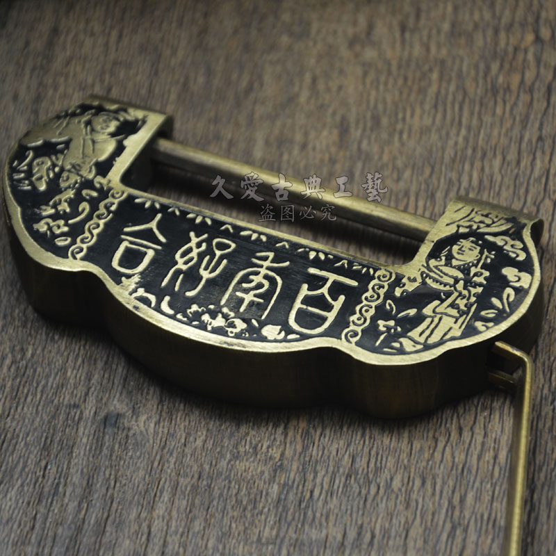 Wedding Old Bronze Lock Cross Open Padlock Chinese Vintage Cooper Bolt Door Lock Head Black Bottom Hundreds Of Years Good Colleage Treasure Lock
